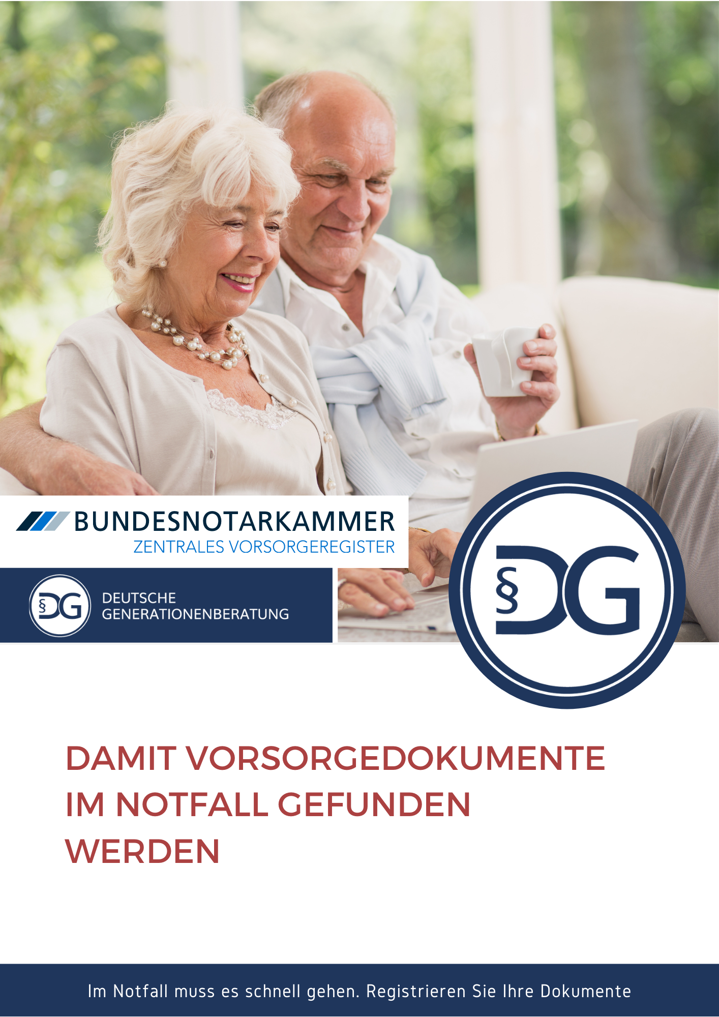 Damit Ihre Vollmachten und Verfügungen auch im Notfall gefunden werden, können Sie Ihre Dokumente auch Deutsche Generationenberatung offiziell registrieren lassen.